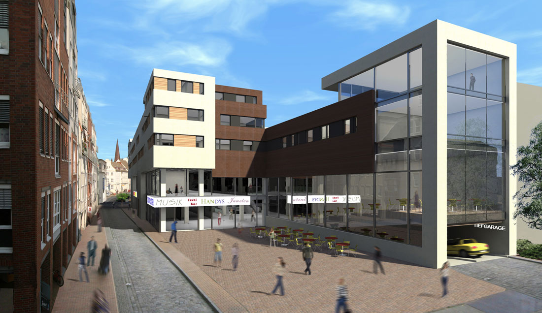• Freistellung des mittleren Quartiers – Schaffung von Blickbeziehungen zum Neuen Markt und einer „Torsituation“ für diesen sonst versteckt liegenden Bereich