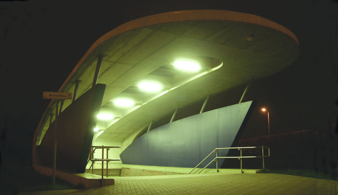 Der Fußgängertunnel aus den 60er Jahren befindet sich in Rostock Lütten-Klein unterhalb der Stadtautobahn in einem städtebaulich relativ diffusen Umfeld. Der Bestand war stark sanierungsbedürftig, die Eingangsbauten nicht mehr zeitgemäß. Für die IGA 2003 wurde dieser Bereich einer der wichtigsten Zugänge.