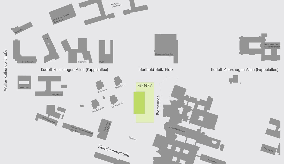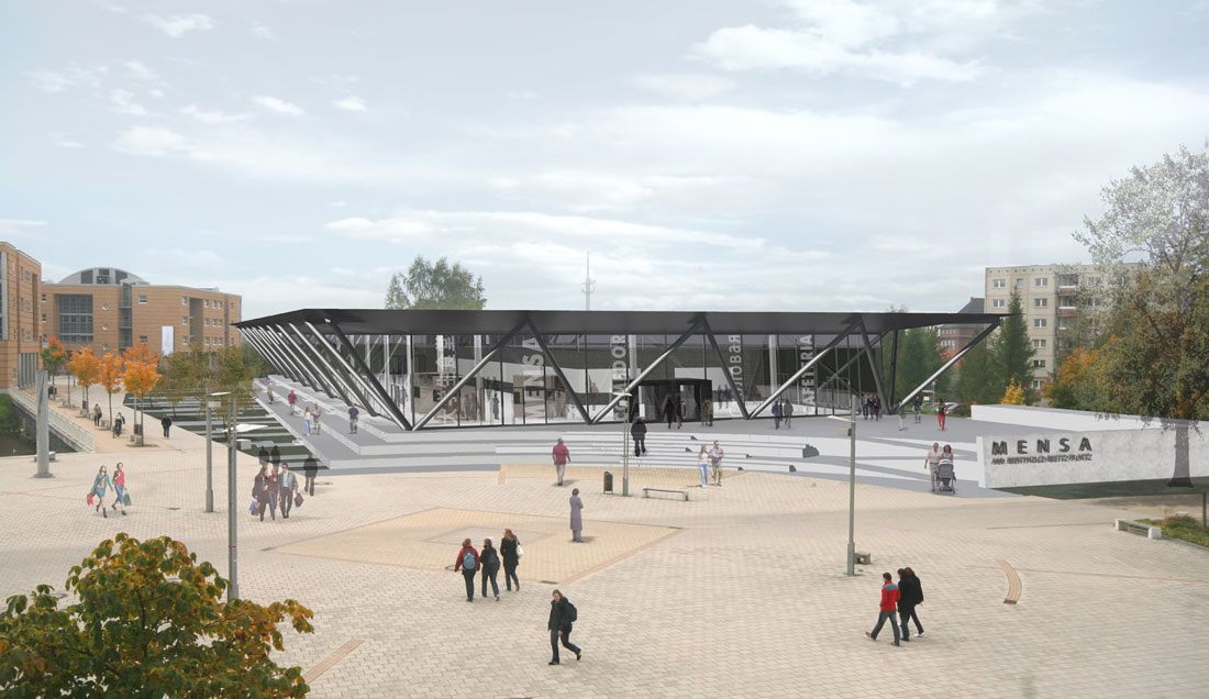 - Neubau einer Mensa und Speisenversorgung als Produktions- und Ausgabemensa für die Studenten, Mitarbeiter und Patienten des Universitätsklinikums