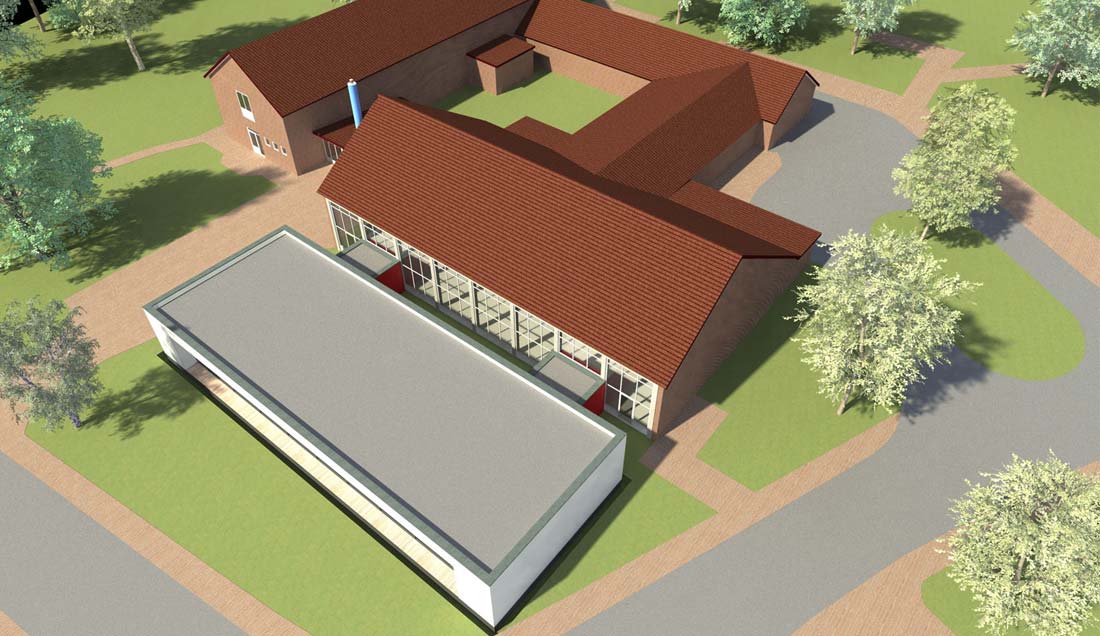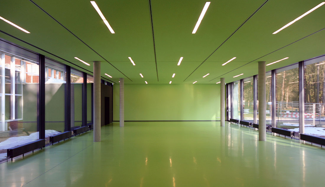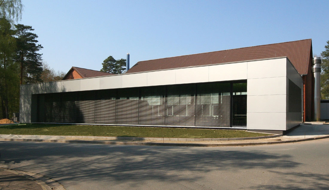 Das bestehende Wirtschaftgebäude des Bundeswehrstandortes Munster aus den 60er Jahren war in seiner Kapazität zu verdoppeln, die vorhandene Mensa auf eine Kapazität von 490 Plätzen durch einen ergänzenden Neubau zu erweitern. Weiterführend war die Bestandssituation im Sinne einer Gesamtlösung umzubauen. Die Erweiterung wird in Form eines alleinstehenden, gestalterisch eigenständigen, sehr transparenten Gebäudes realisiert. Das Konzept setzt dabei die Außenkanten des Speisesaals in Richtung Südost fort. Die Zusammenführung der beiden Speisesäle erfolgt über zwei Verbinder, die gleichzeitig den entstandenen Innenhof begrenzen.