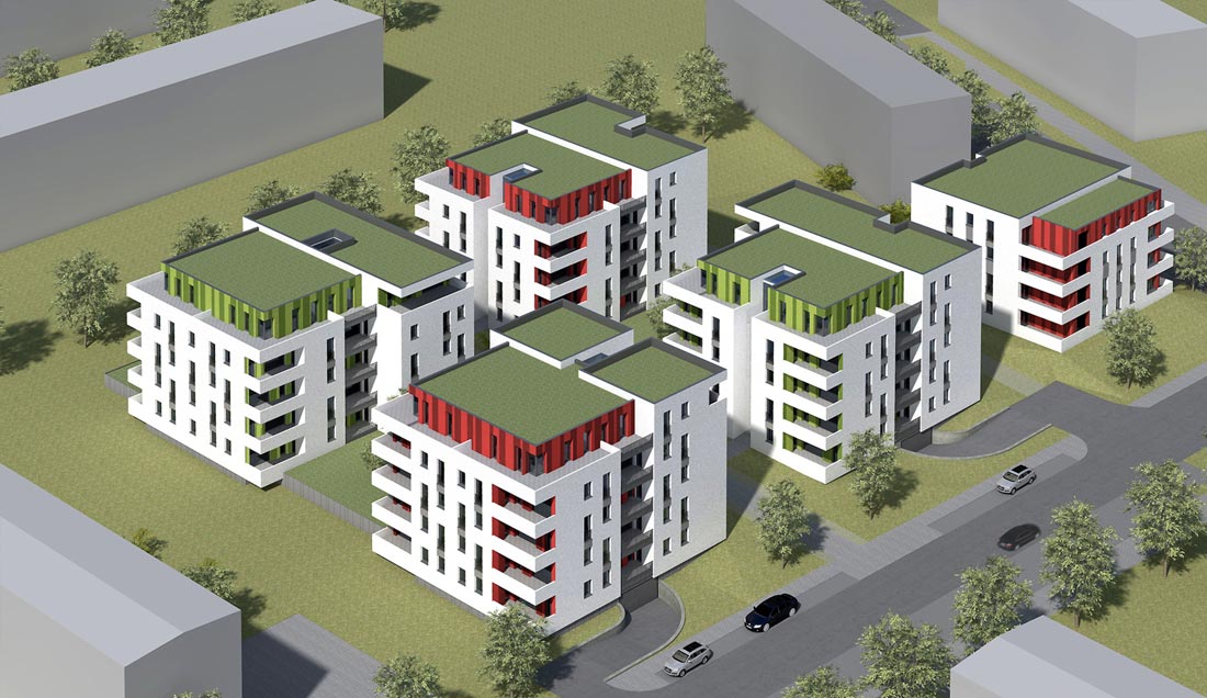 gehobener Wohnungsbau; Tiefgaragenunterlagerung; altengerechtes Wohnen; barrierefreie Erschließung; Energieeffizientes Bauen; Nutzung regenerativer Energien z.B. Solarthermie