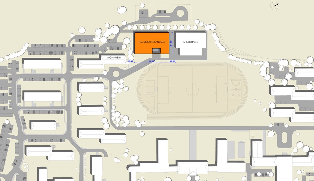 Bauten für die Polizei; Raumschießanlagen, 180° Anlagen; hohe Sicherheitsanforderungen; hoch installierte Gebäude; Schaffung eines angemessenen Gebäudeensembles im denkmalgeschützten Umfeld; Energieeffizientes Bauen; Leitfaden nachhaltiges Bauen