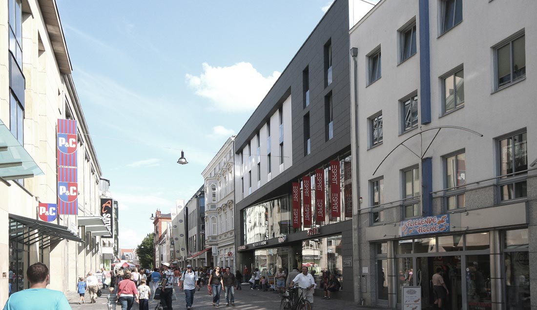Das Kaufhaus befindet sich in der Haupteinkaufsstraße Rostocks.