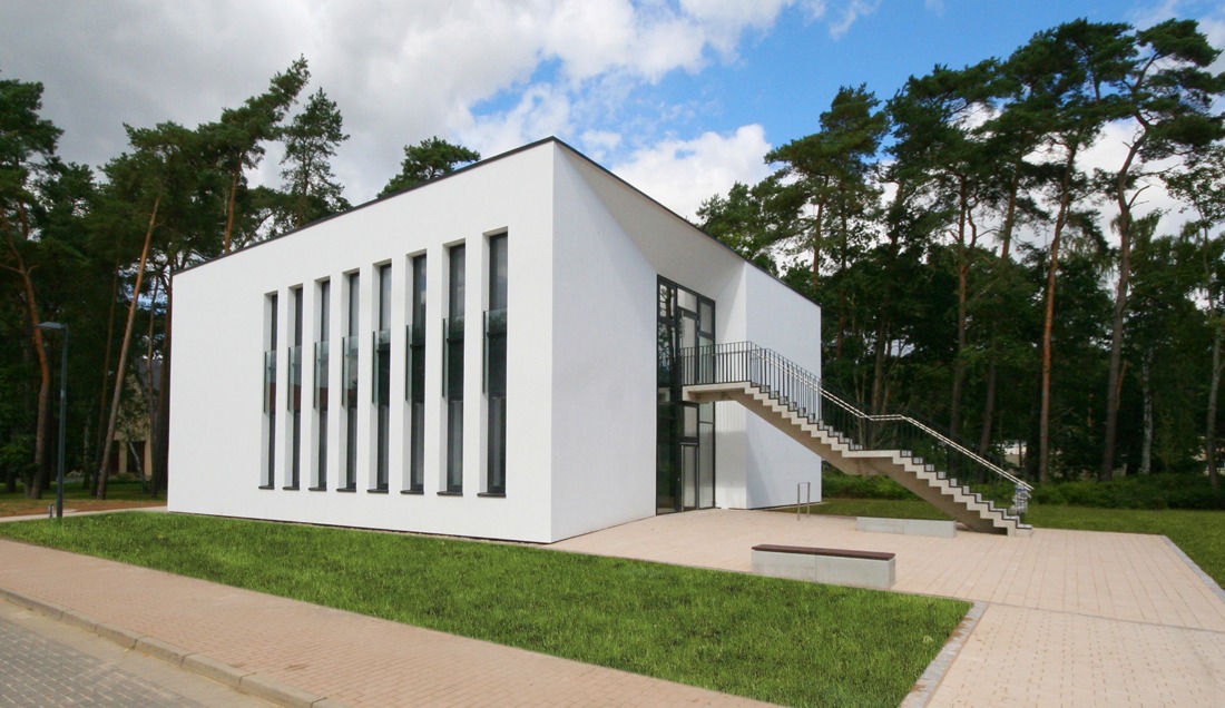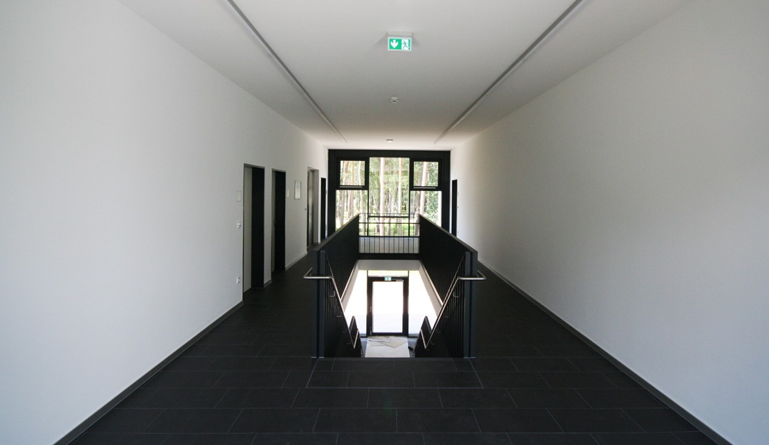 Der Entwurf sieht einen kubischen zweigeschossigen, zweibündigen Baukörper vor, welcher durch eine innenliegende Halle erschlossen wird. Alle Funktionen sind über diese Halle erschlossen: