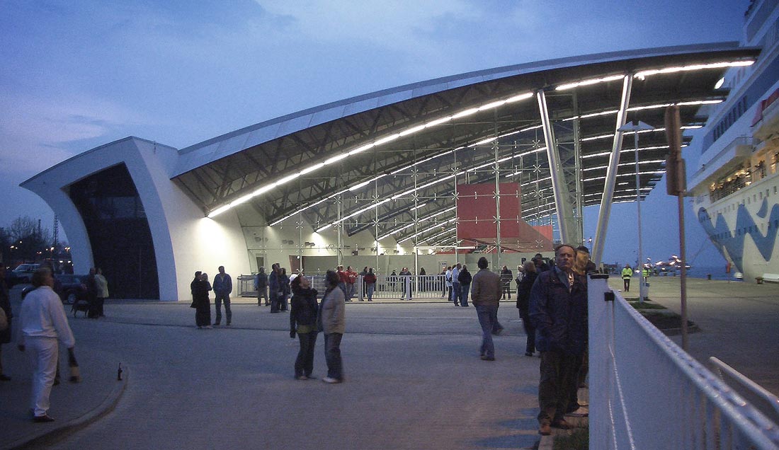 Ziel des Bauvorhabens war die Errichtung eines modernen und repräsentativen Kreuzfahrtterminals für bis zu 2000 Personen pro Anlauf. Der Neubau setzt sich aus zwei kontrastierenden dynamischen Körpern zusammen, welche die Funktionsbereiche klar ordnen: