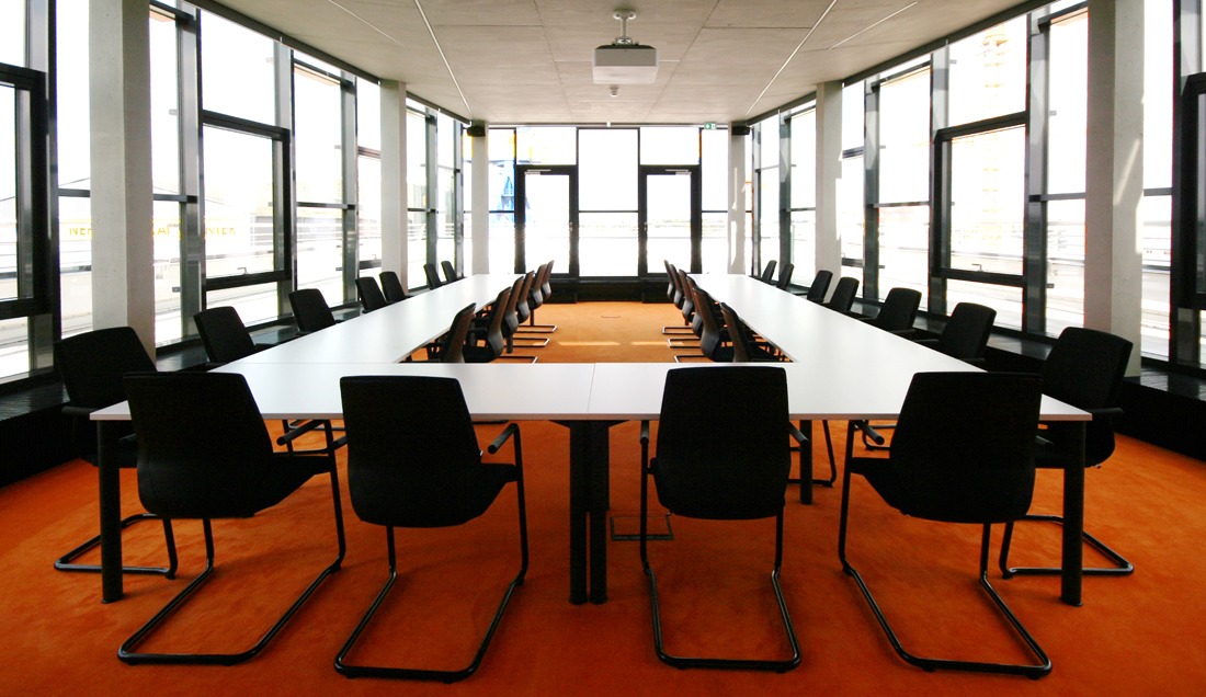 Der Entwurf formuliert einen kompakten 5- geschossigen Baukörper in L – Form. Das Gebäude umfasst einen grünen Hof welcher Vorfeld der zentralen Erschließung und äußerer Aufenthaltsbereich zugleich ist, die Orientierung und Öffnung des Baus erfolgt konsequent in Richtung Wasser, zur Warnow. Die Fassaden sind durch gerasterte Bänderungen gegliedert welche durch kontrastierende Farbflächen rhythmisiert werden – eine nüchterne und funktionsbezogene Grundhaltung des Entwurfes, welche sich in der Wahl der Materialien des Innenraumes fortsetzt. Auch hier finden sich wenige und dauerhafte Materialien, welche dem Gebäude durch Reduktion Qualität und Haltung verleihen. Eine Haltung welche auf undekorierte Klarheit auf den Charme des Einfachen setzt – letztlich auch ein Verweis auf das Thema dieses Hauses: Tourismus in Mecklenburg-Vorpommern.
