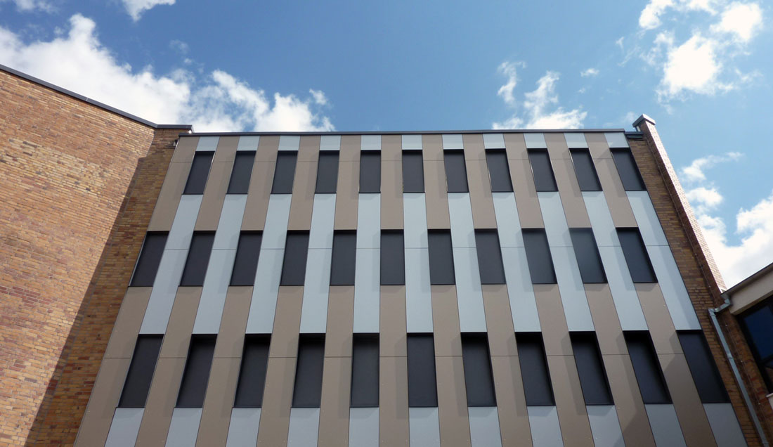 Die neue Fassade des Foyers äußert sich strukturell dem Bestand verwandt, jedoch sehr viel transparenter als dieser. Das Innere des Gebäudes orientiert sich stark an den Anforderungen eines Archivs, für die Oberflächen der Innenräume und der Türelemente wurden daher industrielle Materialien eingesetzt. Das Raumtragwerk im Saal überspannt unverkleidet den Raum und erhält so die Möglichkeit diesen zu einem späteren Zeitpunkt zu reaktivieren.